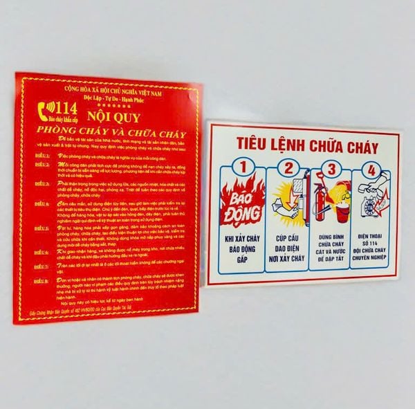 Bộ bảng Nội Quy + Tiêu Lệnh (bằng tôn) được làm bằng tôn tráng kẽm bao gồm hai bảng rời nhau là bảng Nội quy phòng cháy và chữa cháy và Tiêu lệnh chữa cháy.